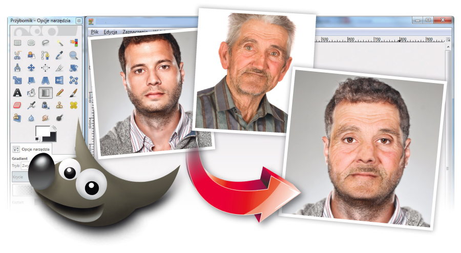 Wykorzystując podstawowe narzędzia GIMP-a i opisane przez nas porady, możesz wykonać symulację starzenia się ludzkiej twarzy. Dzięki temu ćwiczeniu sprawdzisz, jak możesz wyglądać za kilkanaście lub kilkadziesiąt lat.