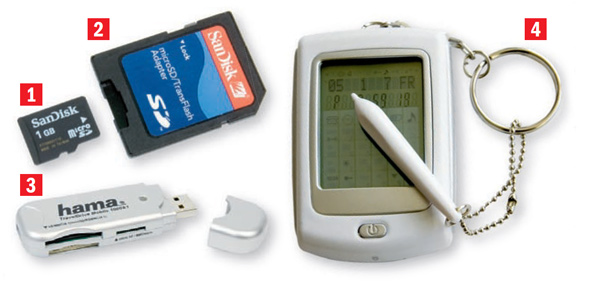 Żadne z wymienionych urządzeń nie zapewnia dostępu do informacji przechowywanych na karcie SIM, np. do bazy kontaktów w książce telefonicznej. Umożliwiają to czytniki kart SIM (4) – w cenie od 20 zł. Urządzenie takie pozwala przegrać zawartość karty SIM na dysk komputera i tym samym wykonać kopię zapasową. Za około 70 zł można kupić czytnik z potrzebnym oprogramowaniem oraz czystą kartą, umożliwiający nagrywanie kart SIM.