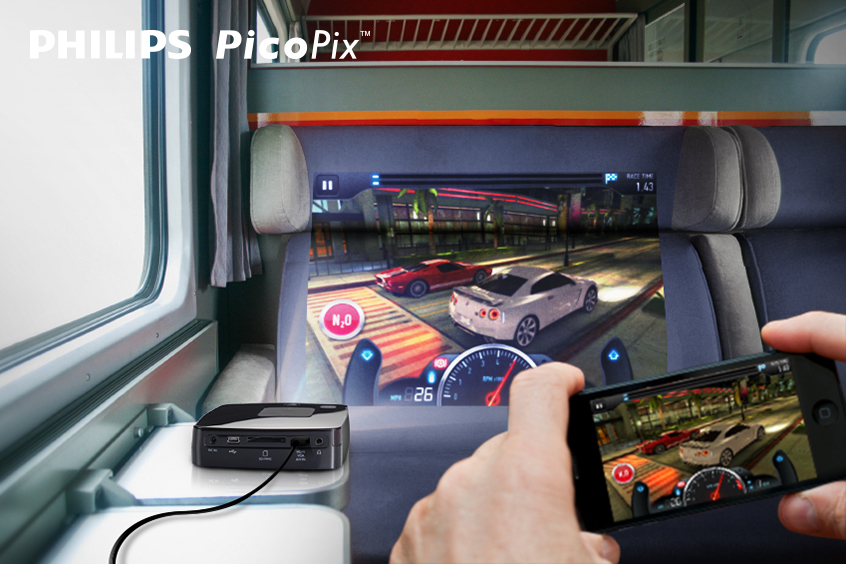 Wyobraźmy sobie drogę pociągiem nad polskie morze. Przed nami kilka godzin podróży. Drzemka, z obawy o bezpieczeństwo bagażu, raczej odpada. Mamy jednak przy sobie smartfona, np. iPhone i kieszonkowy projektor PicoPix 2480. Za pomocą dedykowanego przewodu łączymy oba urządzenia i wreszcie możemy zagrać w grę, którą kupiliśmy dwa miesiące wcześniej, ale nie było do tej pory okazji jej uruchomić.