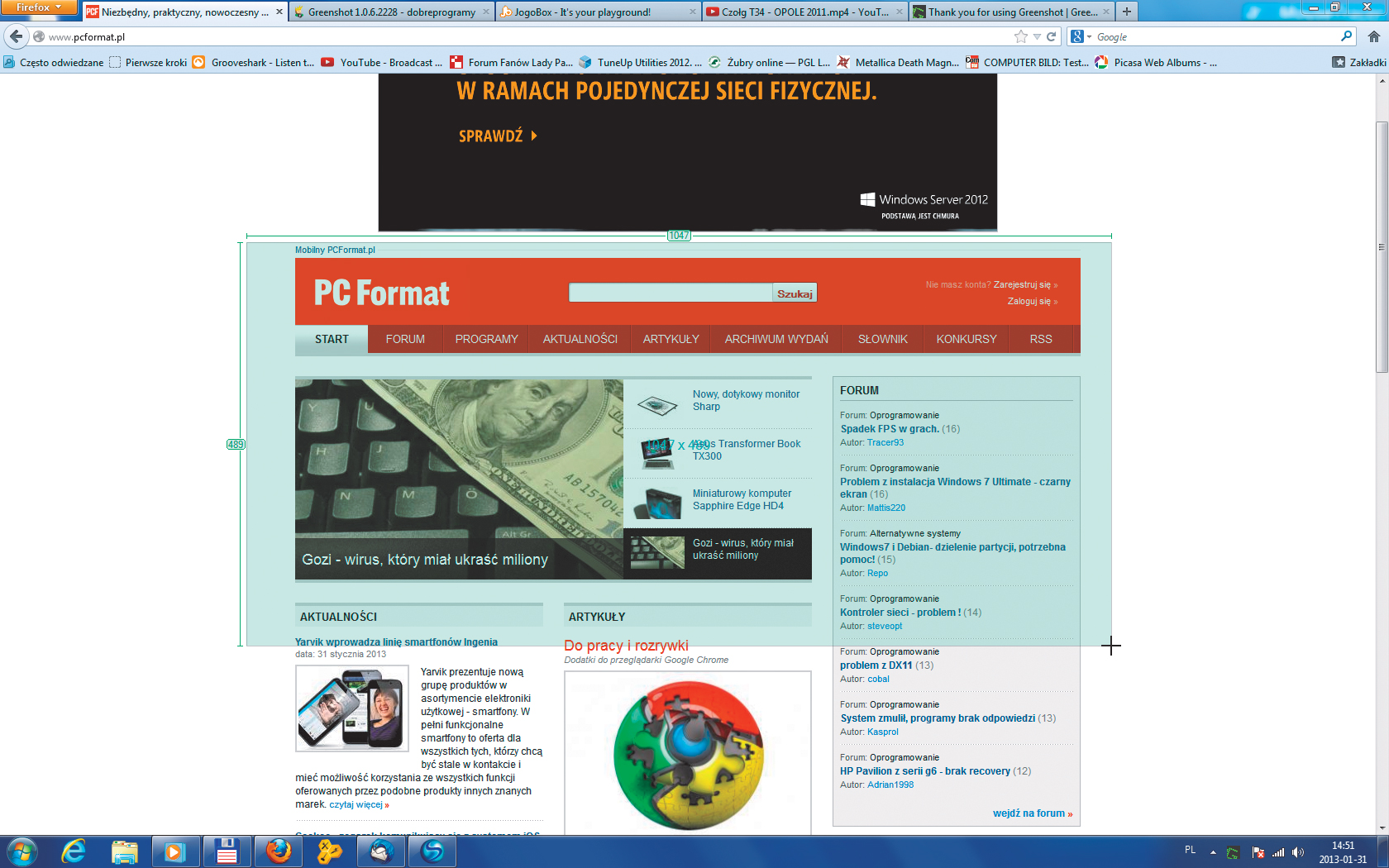 Greenshot (program można pobrać z serwisu PC Format Programy) łączy w sobie funkcję kopiowania zawartości ekranu komputera i podstawowej obróbki powstałych w ten sposób obrazów. Program będzie pomocny uczniom, studentom i nauczycielom, ale też wszystkim, których codzienne obowiązki łączą się z przygotowaniem różnego rodzaju prezentacji. Przyda się również tym, którzy od klasycznych notatek wolą obrazkowe, przestrzennie zorganizowane szkice. W artykule prześledzimy sposób tworzenia zrzutów z ekranu, jego części lub z większych powierzchni stron internetowych. Pokażemy możliwości eksportowania efektów swojej pracy oraz zaprezentujemy wyjątkowo przydatny edytor obrazu, który pozwala na opracowanie i całkowite dostosowanie do własnych potrzeb już powstałych materiałów.