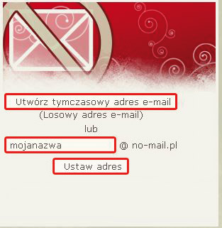W celu automatycznego wygenerowania adresu kliknij przycisk Utwórz tymczasowy adres e-mail. Jeżeli chcesz utworzyć swój własny adres, wpisz go w pole mojanazwa i kliknij Ustaw adres.