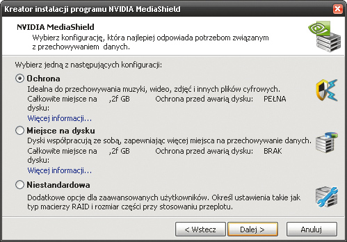 Drugim problemem jest Windows XP. System ten domyślnie nie ma sterowników do kontrolerów RAID, więc nie da się go zainstalować na macierzy. Musisz mieć stację dyskietek i dyskietkę, na którą wgrasz sterownik, by XP skorzystał z niego przy instalacji. Ponieważ już tylko nieliczne pecety mają ten przestarzały napęd, trzeba użyć narzędzia nLite, by zintegrować odpowiedni driver z płytą instalacyjną. Problem ten nie dotyczy Visty, Windows 7 ani Ubuntu – można je zainstalować na macierzach bez kłopotu.