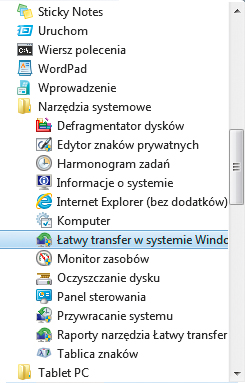 Z grupy Akcesoria, Narzędzia systemowe uruchom program Łatwy transfer w systemie Windows.