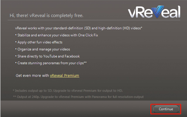 Po zakończeniu instalacji programu pojawi się na ekranie okno dialogowe informujące o najważniejszych funkcjach aplikacji oraz zachęcające do zakupu wersji Premium. Kliknij Continue. Jeżeli jeszcze się pojawią jakieś okna dialogowe, po prostu je zamknij.