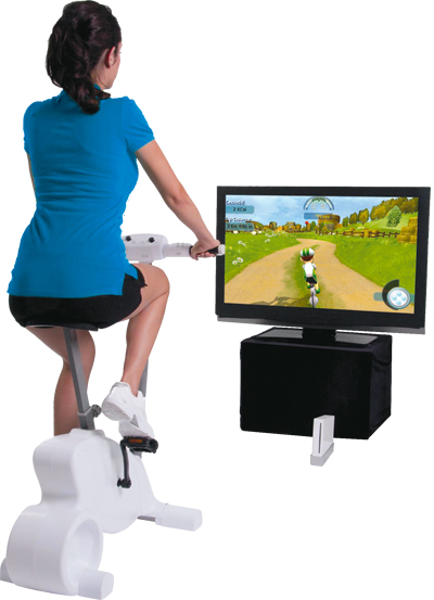 To najstarsza z konsoli wyposażonych w kontroler reagujący na ruch, dlatego też pod względem jakości grafiki ustępuje nieco najnowszym rozwiązaniom Sony i Microsoftu. Z drugiej strony jest przystosowana do największej liczby gier dostępnych na rynku i jest najtańsza. Ponadto do tej konsoli można dokupić całą masę przeróżnych przystawek (od kijów golfowych, przez pistolety, kierownice i wędki, po rowery treningowe), które znacznie uatrakcyjniają zabawę. Wii Fit to program do ćwiczeń sprzedawany w zestawie z kontrolerem w kształcie stepu znanego z salonów fitness. Polecamy również CyberBike – klasycznych rozmiarów stacjonarny rower.