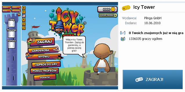 Na portalu NK.pl rozpoczęło się szaleństwo gier, znane dobrze użytkownikom Facebooka. Najpopularniejszy w momencie pisania tego artykułu tytuł Icy Tower miał już blisko 1,4 mln użytkowników.