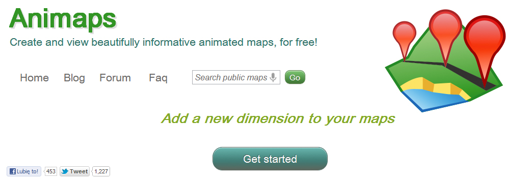 Animaps korzysta z podkładu kartograficznego oraz grafiki wektorowej Google Maps. Choć w podstawowej wersji tego serwisu da się opracować własne mapy ze ścieżkami i zdjęciami (funkcja Moje mapy), to brakuje tam narzędzi pozwalających tworzyć zawartość dynamiczną. Tę lukę wypełnia serwis Animaps. Możesz go wykorzystać do prostych projektów, jak również do bardzo rozbudowanych, np. relacji z egzotycznej podróży, w której obok informacji o trasie są na mapach wyświetlane opisy, zdjęcia, filmy wideo. Animaps przyda się także w poważnych zastosowaniach. Bez problemu utworzysz tam dynamiczne mapy zasięgowe i zaprezentujesz, jak na przestrzeni czasu zmieniały się np. granice obszaru czy strefa wpływu.