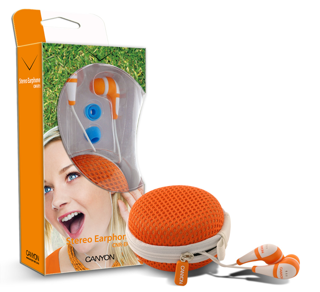 Modele słuchawek CNR-EP3, CNR-EP4, CNR-EP5 i CNR-EP6 są dostępne w czterech wariantach kolorystycznych: pomarańczowym, różowym, błękitnym i zielonym. Za bazę każdego z modeli przyjęto biel, która przeplatana jest barwnymi elementami. Do zestawu dopasowano okrągłe etui z zewnątrz przypominające niewielką poduszkę. Ten poręczny dodatek daje pewność, że słuchawki są zabezpieczone przed uszkodzeniami i splątaniem podczas transportu. Pokrowiec będzie pomocny w utrzymaniu porządku w torbie czy plecaku – odpowiedni sposób przechowywania słuchawek pozwoli uniknąć ich nerwowych poszukiwań.