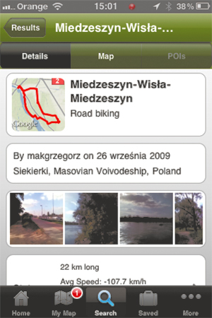 Aplikacja Every Trail to klient usługi społecznościowej, której użytkownicy przygotowują ciekawe wycieczki rowerowe (ale też piesze i samochodowe). Co ważne, wycieczki podzielono ze względu na stopień trudności terenu – na osobnej liście znalazły się np. trasy, które możesz pokonać tylko rowerem górskim. Każda wycieczka opatrzona jest opisem, zdjęciami ciekawych miejsc oraz oceną innych użytkowników. Gdy znajdziesz interesującą cię wycieczkę, możesz wyświetlić ją na mapie, a dzięki wbudowanemu w smartfon odbiornikowi GPS zawsze wiesz, jak długa droga jeszcze przed tobą. Jeśli chcesz pokazać innym użytkownikom swoją ulubioną trasę, wystarczy, że włączysz zapisywanie śladu GPS na początku wycieczki – zdjęcia i opis trasy także wykonasz bezpośrednio z aplikacji, a potem umieścisz na swoim koncie w usłudze Every Trail. Płatna wersja aplikacji umożliwia m.in. zapisy wideo z wycieczek.