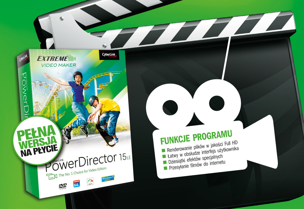 PowerDirector to lider wśród aplikacji do edycji wideo. Zamieszczona na naszej płycie DVD pełna wersja 15 LE ma bardzo wygodny interfejs użytkownika i rozbudowane możliwości oraz zapewnia dostęp do wielu profesjonalnych efektów, którymi uatrakcyjnisz swój film.