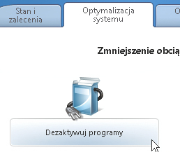W oknie głównym kliknij zakładkę Optymalizacja systemu, a następnie w sekcji poniżej kliknij Wyłącz programy.