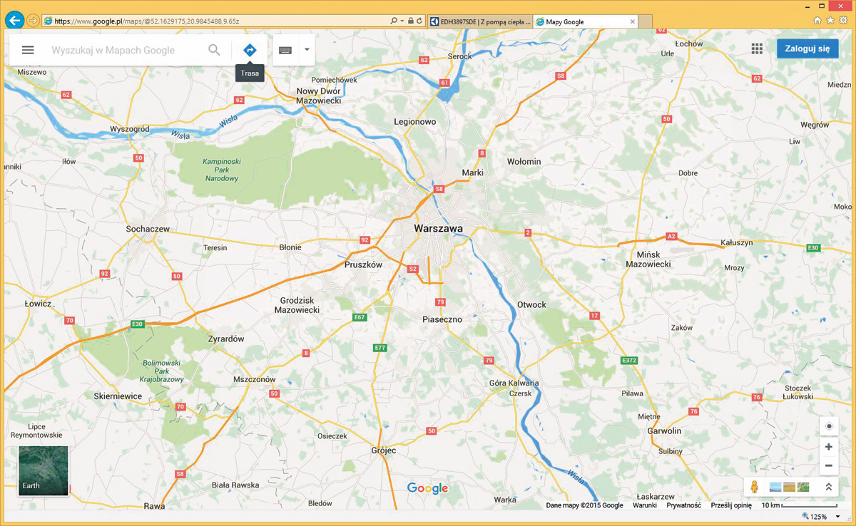 Otwórz stronę Map Google. Kliknij przycisk <Trasa> umieszczony z prawej strony pola wyszukiwania. Za pomocą ikon u góry możesz określić sposób, w jaki chcesz dostać się do wybranego miejsca – domyślne ustawienia dotyczą podróży autem osobowym. Pola poniżej dotyczą punktów trasy – miejsce startu i punkt docelowy. Punkty można definiować, korzystając z funkcji wyszukiwania bądź klikając odpowiednie miejsca na mapie.