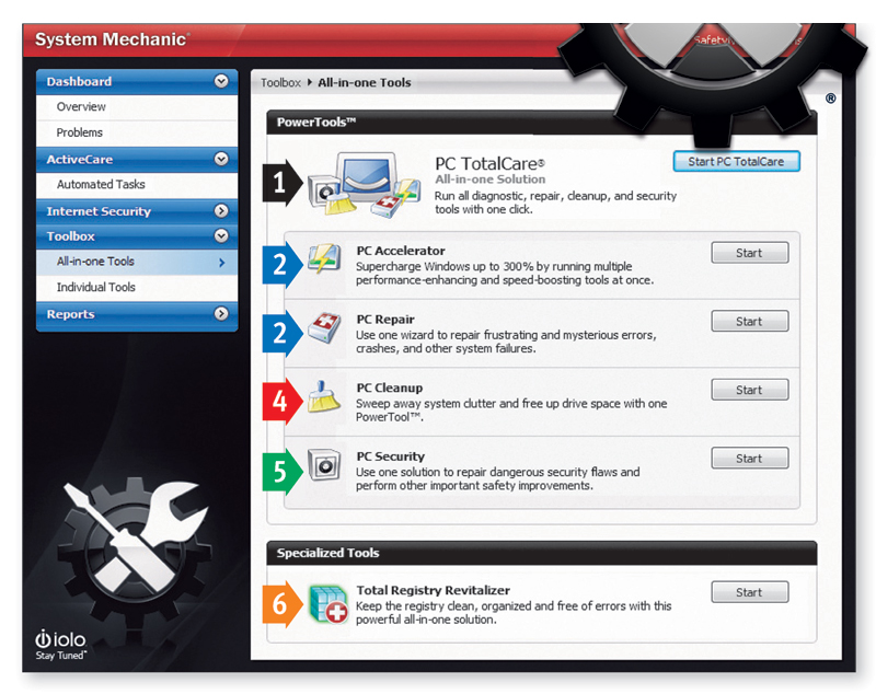 Z menu Toolbox wybierz opcję All-in-one Tools. W sekcji Specjalized Tools kliknij przycisk Start przy narzędziu Total Registry Revitalizer.