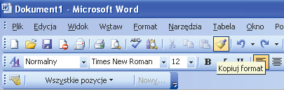 Ikona malarza formatów powinna być widoczna na domyślnym pasku narzędziowym Standardowy.