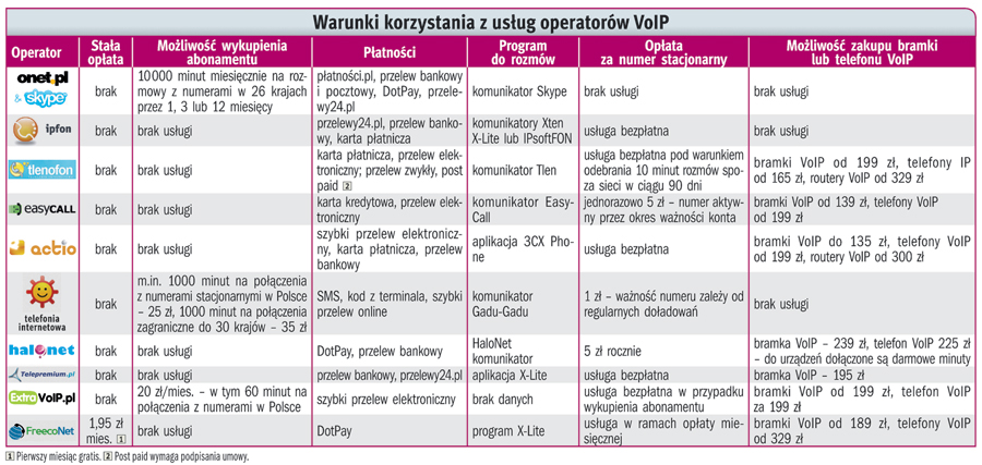Utwórz konto w usłudze wybranego operatora VoIP – to operacja całkowicie bezpłatna – i pobierz darmowy program do prowadzenia rozmów. Od tego momentu możesz za darmo rozmawiać ze wszystkimi osobami, które mają konto u tego samego operatora. Jeśli wybierzesz jedną z popularnych sieci, np. Skype, Gadu naGłos lub Tlenofon, bardzo możliwe, że będziesz mógł rozmawiać z dużą grupą swoich znajomych.