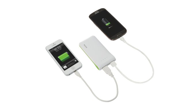 Idealnym rozwiązaniem są „power banki”. To niewielkich rozmiarów przenośnie „baterie” za pomocą których naładujemy smartfon, tablet oraz inne urządzenia, przez co możemy korzystać z nich nawet o kilka razy dłużej niż normalnie bez konieczności podłączania ich do prądu. Leitz Complete w swojej ofercie posiada ładowarkę przenośną umożliwiającą ładowanie równocześnie dwóch telefonów czy tabletu. Urządzenie oferowane w cenie ok. 200 złotych wyróżnia się wysoką wydajnością (aż 5000 mAh) oraz atrakcyjnym wyglądem, czyniąc z ładowarki stylowy gadżet. W zestawie kabel USB (10 cm).