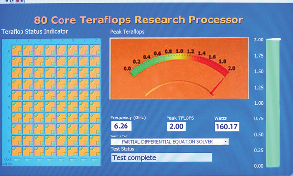 Najbardziej spektakularnym dokonaniem programu Tera-scale jest pokazywany m.in. na ostatnim forum technologicznym Intel Developer Forum (IDF) w San Francisco 80-rdzeniowy procesor o nazwie kodowej Polaris. Maksymalna moc obliczeniowa tego układu wynosi 2 teraflopsy. Dla porównania, najpotężniejszy obecnie na świecie superkomputer IBM Blue Gene/P, składający się z 294 912 procesorów, ma moc obliczeniową rzędu 1 petaflopsa (biliard, czyli 1×1015 operacji na sekundę), a jego poprzednik BlueGene/L miał wydajność 367 teraflopsów.