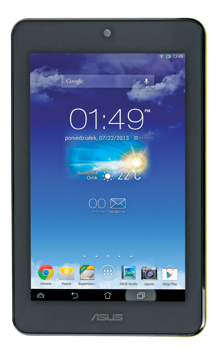 W przeciwieństwie do niemarkowych tabletów w HD7 Asus zastosował autorską nakładkę na interfejs, która jest poprawnie przetłumaczona na język polski i ma klawiaturę wspieraną przez polski słownik. Wygląd i funkcje interfejsu są klasyczne, z wyjątkiem górnego paska powiadomień. Nietypowo jest on bardzo wąski (nie zajmuje całej szerokości ekranu). Nie znajdujemy uzasadnienia dla takiej realizacji tego elementu.