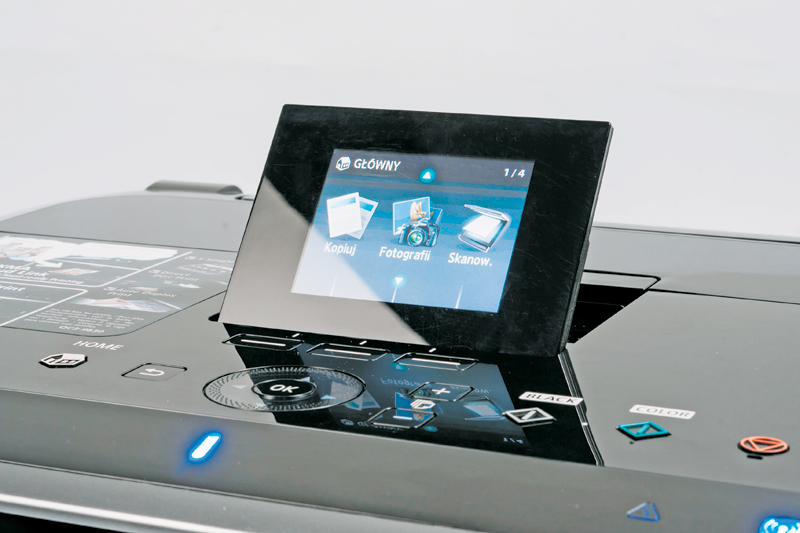 Najbogatsze wyposażenie ma Canon: jest to port USB i Wi-Fi, czytnik kart pamięci, host USB do podłączania urządzeń zewnętrznych, moduł druku dwustronnego, dwa podajniki na papier, a nawet tacka do druku na płytach. Urządzenie ma też dobry, kolorowy ekran.
