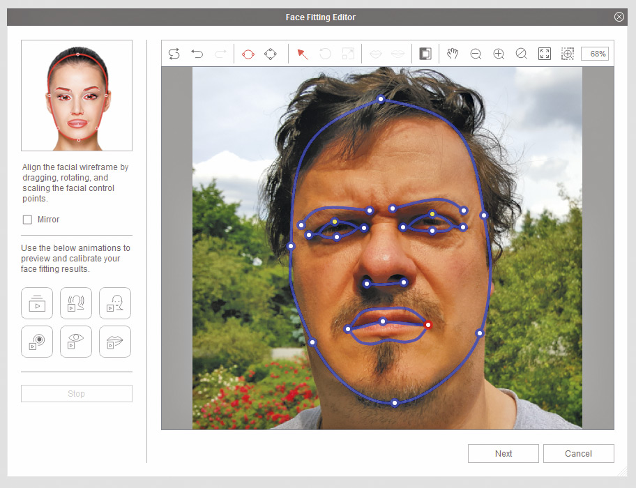 Nie dość, że program prowadzi krok po kroku od importu zdjęcia do w pełni animowanego modelu twarzy, to jeszcze całe działanie ogranicza się tu do wskazania kilku ściśle określonych punktów na fotografii. Pozostałą część pracy wykonuje już sam program. By jak najdokładniej odwzorować rysy twarzy, po drodze przechodzi się jeszcze przez szereg dodatkowych opcji, ale i one sprowadzają się w zasadzie do kilku prostych kliknięć bądź przeciągnięć myszką. W ten sposób można m.in. skorygować wielkość oczu, długość i ułożenie brwi, rozmiar nosa, kości policzkowych i uszu. Nie mniej istotne jest ustawienie ust. Wszak chcesz, by tworzony model mógł „mówić” i robił to jak najlepiej.