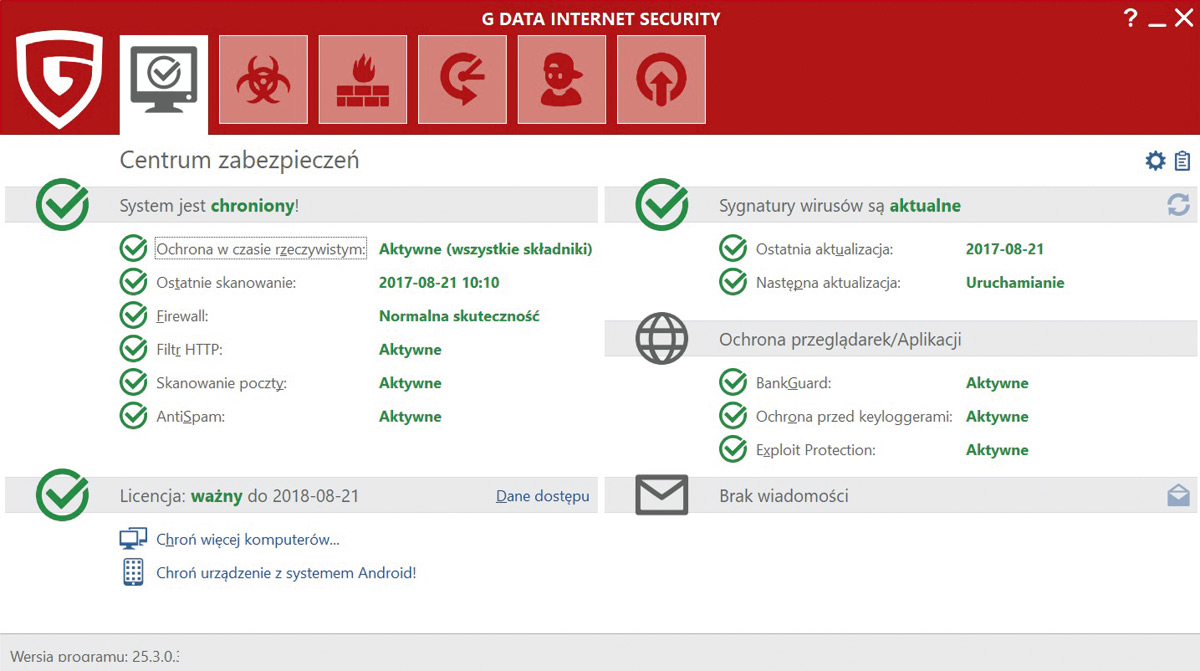 Gdy potrzebujesz skutecznej i efektywnej ochrony przed złośliwym oprogramowaniem, wyłudzeniem danych, zaszyfrowaniem dysku czy spamem, nie warto eksperymentować. Większość użytkowników sięga po znane i sprawdzone rozwiązania. Takim produktem jest oprogramowanie G DATA Internet Security 2018. To kompleksowy pakiet bezpieczeństwa adresowany do użytkowników prywatnych oraz małych firm, nagradzany i polecany przez testujące laboratoria oraz wielu specjalistów.