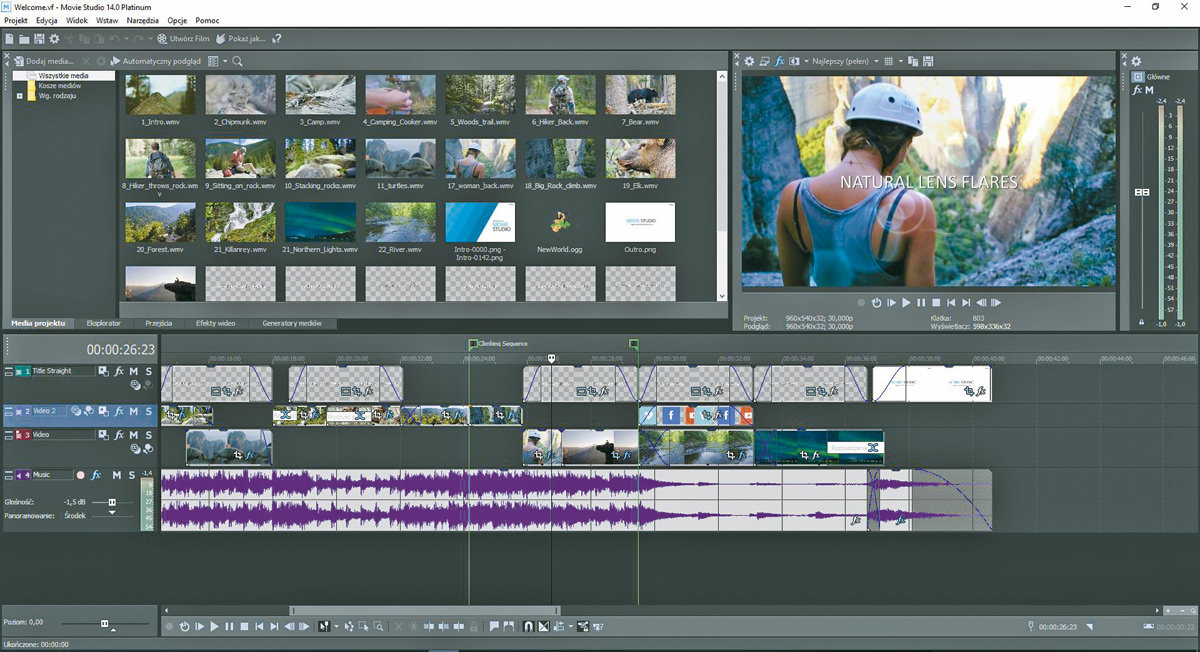 Pośród programów do edycji wideo Sony Movie Studio od zawsze uchodziło za zubożoną wersję profesjonalnego Vegas Pro. Zubożoną, ale nie uproszczoną, bo podobieństwo do znacznie bardziej zaawansowanego narzędzia dotyczyło też dość specyficznego interfejsu, w którym odnaleźć się użytkownikom innych programów nie było wcale łatwo. I choć ostatnimi czasy widać w nim było coraz więcej udogodnień, w nowej, czternastej odsłonie serii interfejs powrócił do nieco bardziej zaawansowanego widoku. Ale nowy wygląd interfejsu to nie koniec zmian.