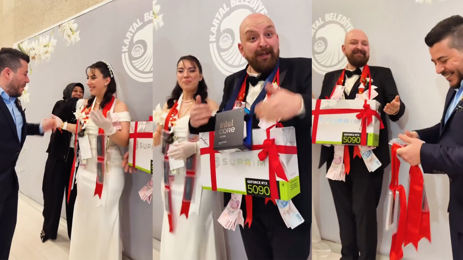 Zamiast tradycyjnych prezentów ślubnych – topowa karta graficzna, komplet modułów RAM-u oraz wydajny procesor. Przyjaciele tureckiej pary obdarowali ją zestawem nietypowych upominków, aczkolwiek pan młody z tego powodu wcale nie sprawiał wrażenia smutnego – wręcz przeciwnie, na nagraniu upamiętniającym to wydarzenie aż tryska radością.
