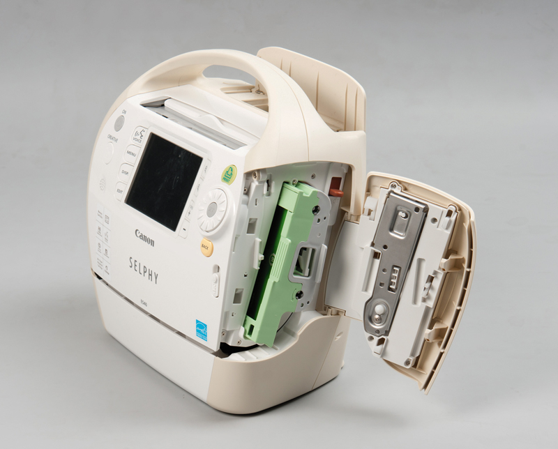Firma Sony swoją najnowszą drukarkę połączyła z dodatkowym urządzeniem – z elektroniczną ramką na fotografie. Panel z ramką umieszczono na górnej pokrywie drukarki i jest uchylany pod kątem do urządzenia. Dodatkowo całość można postawić pod odpowiednim kątem dzięki pałąkowi przykręcanemu do korpusu drukarki. Dzięki temu będzie widoczna tylko elektroniczna ramka, a nie będzie widoczne całe urządzenie. Model Canon Selphy ES40 też ma ciekawą bryłę. Poza tym w drukarce zastosowano taki system podawania nośników, że nic nie wystaje poza obrys obudowy.