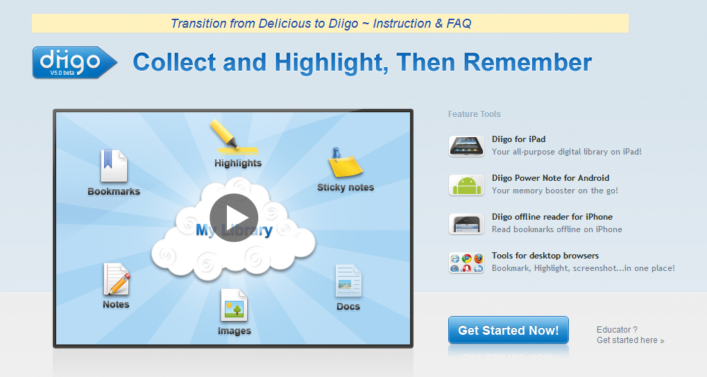 Diigo to serwis, który dodaje nowe funkcje do przeglądarki stron WWW – zaawansowane katalogowanie stron internetowych, a także ich indywidualne opracowywanie. Zupełnie inaczej niż w przypadku tradycyjnych notatek można mieć pewność, że wszystko będzie wzorowo uporządkowane i dostępne online w każdej chwili. Dodatkowe funkcje, pozwalające na przejrzystą inwentaryzację ulubionych stron, są znakomitym narzędziem pracy. Po zarejestrowaniu się w serwisie dostęp do podstawowych funkcji Diigo możesz uzyskać za pośrednictwem odnośnika dodanego do zakładek lub ulubionych. Większą liczbę funkcji zapewnia pasek narzędziowy, który jest dodatkiem do używanej przeglądarki.