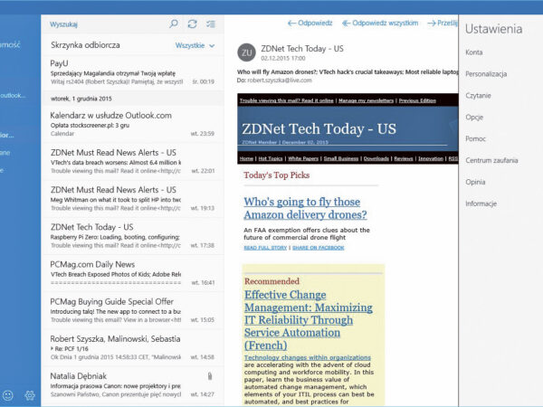 Poczta, kalendarz i pulpit
