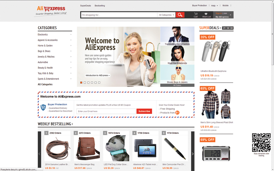 Osobom, które spędzają wiele godzin na internetowych zakupach i łowieniu okazji w sieci, polecamy platformę zakupową Ali Express, która skupia przede wszystkim chińskich sprzedawców. Ceny są tu naprawdę okazyjne. Z intuicyjnym interfejsem poradzą sobie osoby nieznające języka angielskiego. Większość ofert zawiera bezpłatną dostawę do Polski. Do płatności za zakupy polecamy karty walutowe.