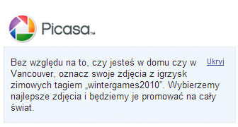 Można zatem oczekiwać, że w przypadku wydarzeń o tak dużej randze jak Zimowe Igrzyska Olimpijskie 2010 w Vancouver Google zaproponuje równie interesującą formę promocji zdjęć użytkowników.