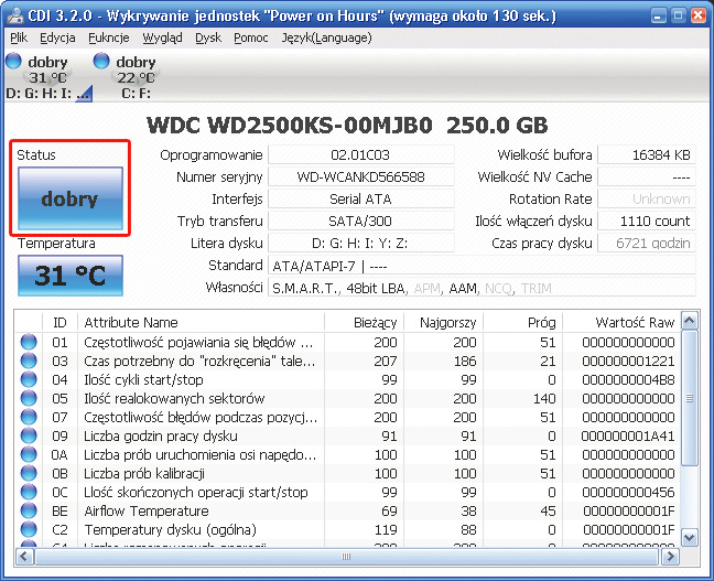 Informacje gromadzone przez system S.M.A.R.T. sa przechowywane na dysku twardym. By je odczytać, musisz wykorzystać dodatkowe oprogramowanie, np. CrystalDiskInfo, który znajdziesz na dołączonej do tego wydania płycie DVD.