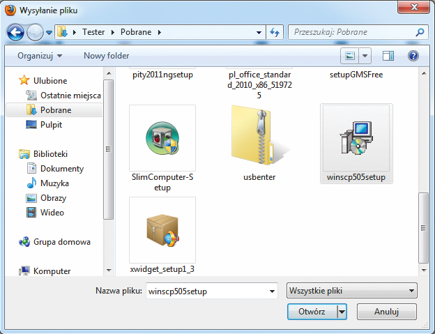 W oknie Wysyłanie pliku przejdź do folderu zawierającego plik, który chcesz sprawdzić, wskaż plik i kliknij Otwórz.