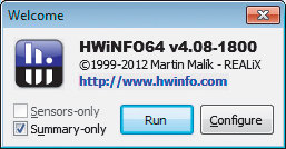 Użyj odpowiednich dla swojego systemu wersji (32- lub 64-bitowych) programów HWiNFO i Prime95 z naszej płyty. Rozpakuj archiwa z programami do dowolnych folderów. Uruchom program HWiNFO, zaznacz opcję Summary-only i kliknij Run.