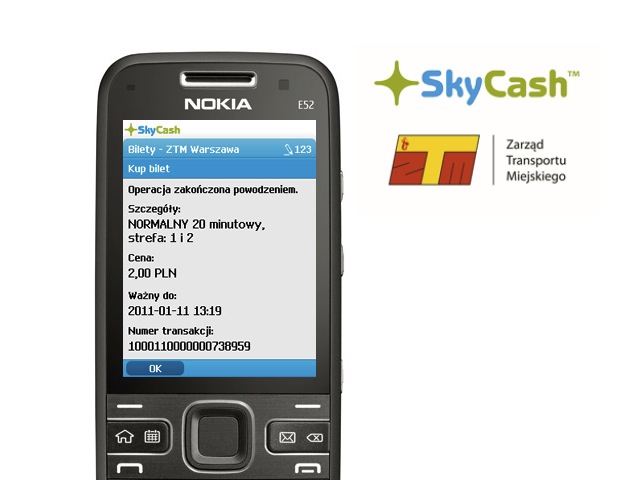 Zarząd Transportu Miejskiego w Warszawie (ZTM) wprowadza usługę zakupu biletów za pośrednictwem SkyCash. Pozwala ona na nabywanie telefonem komórkowym biletów czasowych ZTM. Bilety obowiązują w autobusach, tramwajach, metrze i kolejce SKM.