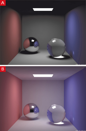 Grafika generowana (renderowana) z wykorzystaniem algorytmów globalnego oświetlenia wygląda bardziej realistycznie niż sceny, w których wykorzystuje się wyłącznie oświetlenie bezpośrednie, bo lepiej oddaje zjawiska fizyczne zachodzące w przyrodzie (odbijanie promieni słońca przez różne obiekty). Podobne algorytmy są powszechnie wykorzystywane podczas generowania komputerowo obrazów kinowych (techniki śledzenia promieni światła ray-tracing czy mapowania fotonowego).