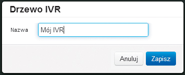 Pierwszym elementem, jaki należy zawsze zdefiniować, jest tzw. schemat systemu IVR. To obiekt, który będzie grupował strukturę połączeń, numery telefonów i usługi dodatkowe. Jeżeli żaden schemat nie został wcześniej włączony, to w trakcie pierwszego zalogowania system wirtualnej centrali poprosi o jego utworzenie. Wystarczy wpisać dowolną nazwę, np. Mój VR, i kliknąć Zapisz.