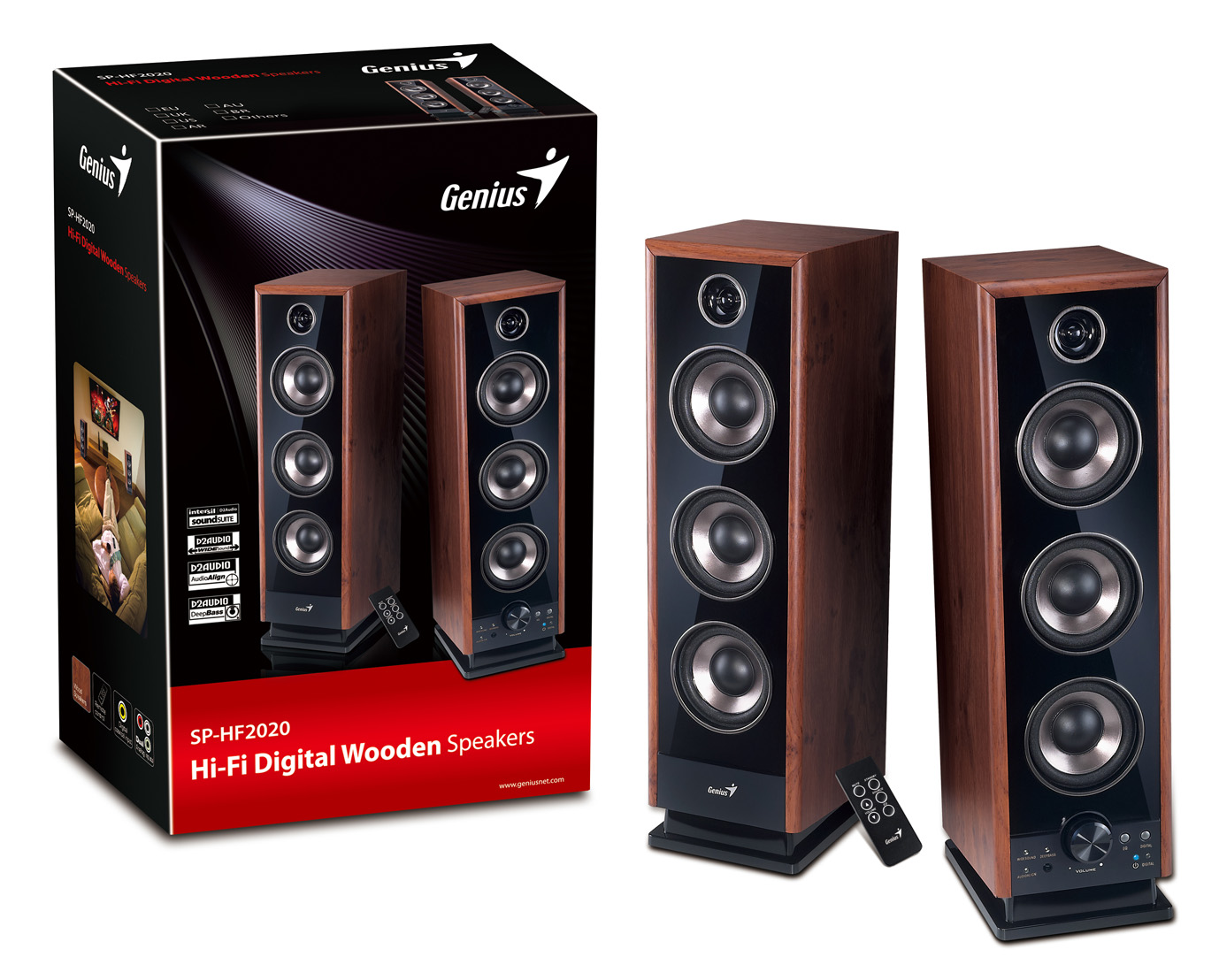 Głośniki Genius SP-HF2020 to zestaw audio o łącznej mocy 60W (RMS) wyposażony w nowoczesny cyfrowy procesor dźwięku D2Audio (Digital Sound Processor).