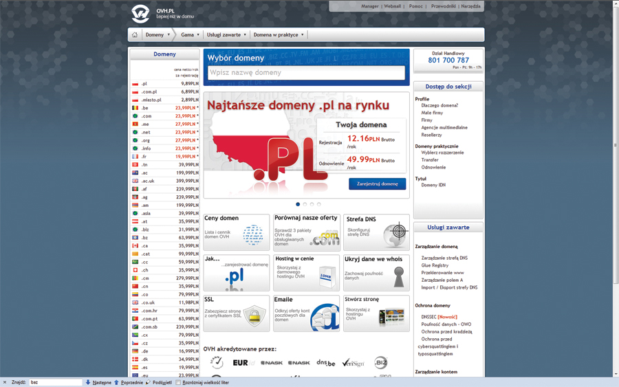 Zanim więc zdecydujesz się na zgarnięcie atrakcyjnego adresu za bezcen, zastanów się, czy chcesz przepłacać za przedłużenie ważności domeny. Dla porównania u najtańszych rejestratorów domen za odnowienie adresu z końcówką .pl zapłacisz o połowę mniej niż w home.pl lub nazwa.pl. Najbardziej atrakcyjny cennik znajdziesz w ovh.pl, gdzie za rejestrację domeny za pierwszy rok zapłacisz 12 złotych z groszami, a za przedłużenie tylko niecałe 50 złotych.