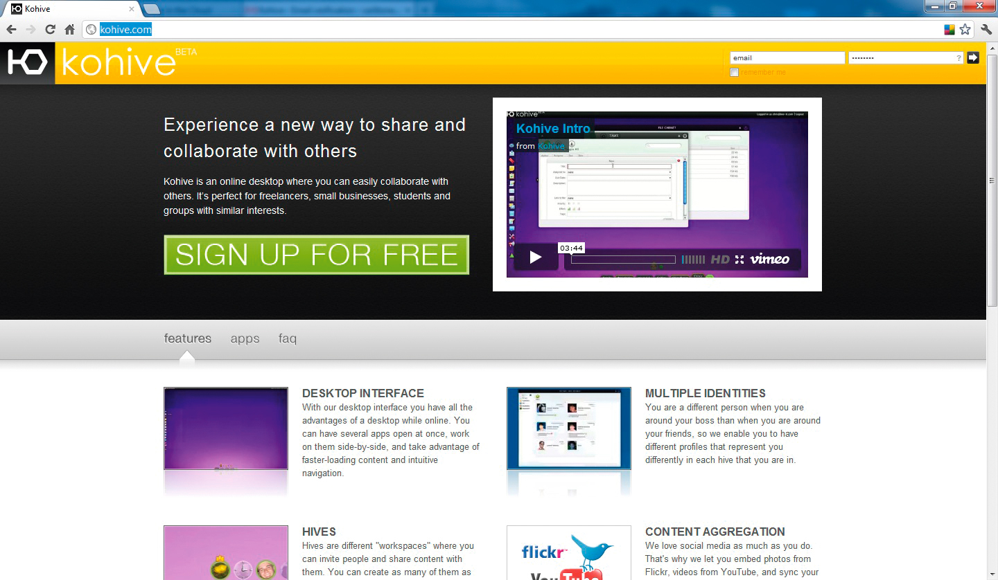 W internecie istnieje wiele różnych narzędzi, które umożliwiają komunikację jego użytkownikom. Służy do tego poczta e-mailowa, komunikatory, serwisy społecznościowe. Kohive jest przykładem połączenia wszystkich zalet tych narzędzi i umieszczenia ich we wspólnej przestrzeni. Kohive to wirtualny pulpit lub dokładniej – wirtualny ul (z ang. hive to ul). Dostęp do serwisu Kohive uzyskuje się z przeglądarki internetowej, dzięki czemu nie trzeba instalować żadnych programów ani rozszerzeń. Korzystanie z usługi Kohive jest bardzo proste, wystarczy do tego podstawowa znajomość języka angielskiego. Dzięki tej usłudze współpraca zdalna lub kontakt z przyjaciółmi jest o wiele łatwiejszy.