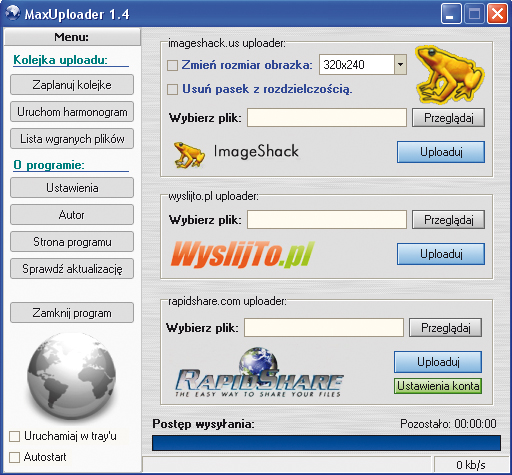 Program MaxUploader został stworzony z myślą o użytkownikach takich popularnych witryn, jak: ImageShack, WyślijTo.pl i RapidShare. Dzięki aplikacji możesz w wygodny sposób wysyłać dane na serwery.
