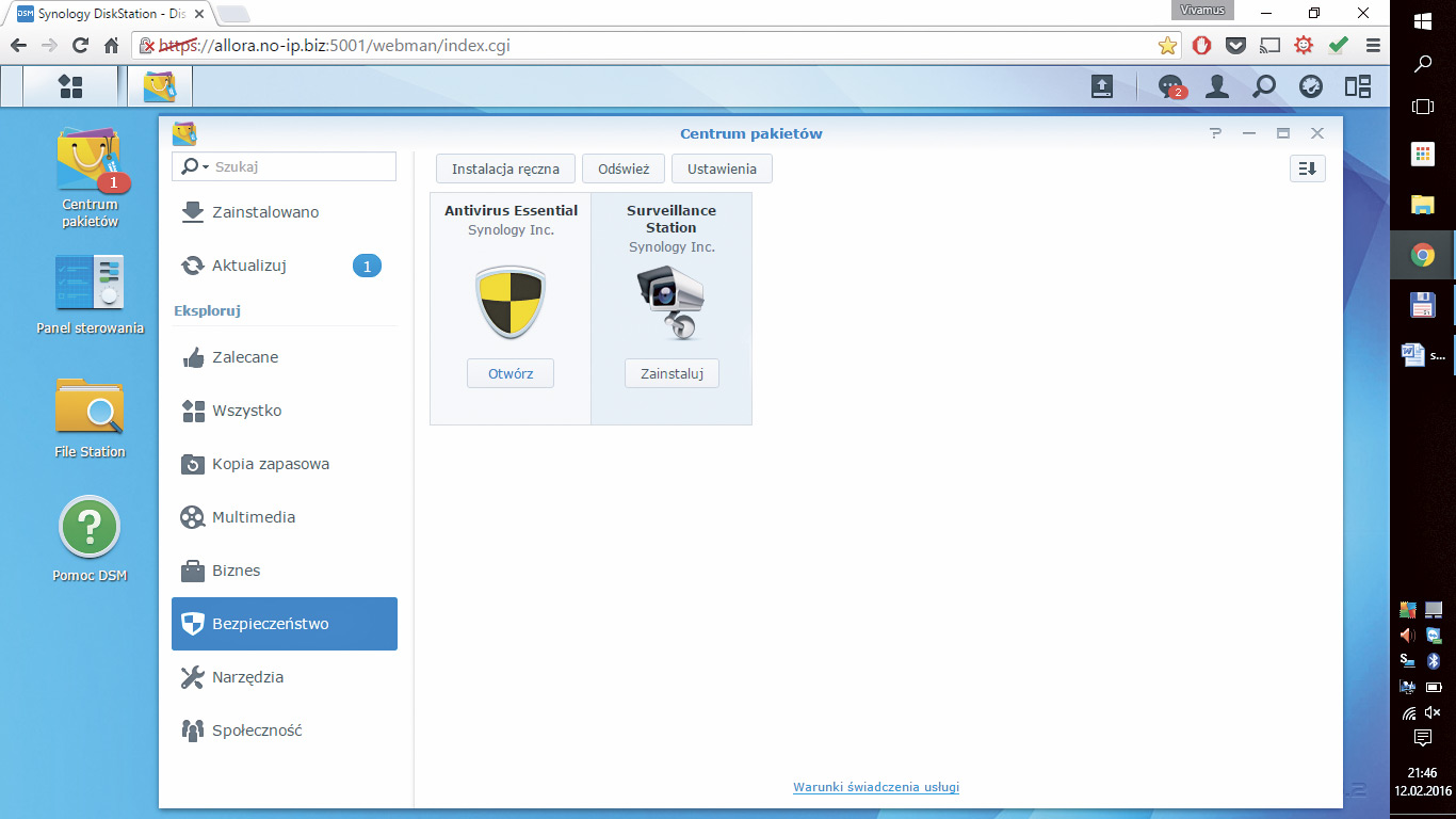 Pakiet Surveillance Station znajdziesz w systemie Synology DSM, w Centrum pakietów.