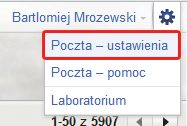 Zanim przystąpisz do konfiguracji Outlooka, upewnij się, czy w koncie Google masz włączoną obsługę IMAP. W tym celu wejdź na stronę www.gmail.com, kliknij ikonę w prawym górnym rogu, z menu wybierz polecenie Poczta – ustawienia. Gdy znajdziesz się w panelu ustawień, kliknij zakładkę Przekazywanie i POP/IMAP.