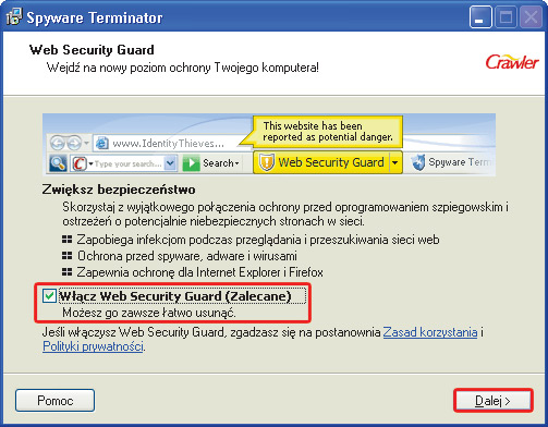 Rozpocznij instalację programu, wybierając go z menu płyty dołączonej do tego wydania PC Formatu. W oknie instalacyjnym kliknij Dalej, a następnie Agree & Install. Możesz teraz zdecydować, czy po instalacji programu zostanie automatycznie włączony moduł Web Security Guard, który chroni komputer przed infekcją, np. gdy surfujesz w sieci. Jeśli chcesz włączyć ten moduł, zaznacz pole Włącz Web Security Guard (zalecane). Kliknij Dalej.