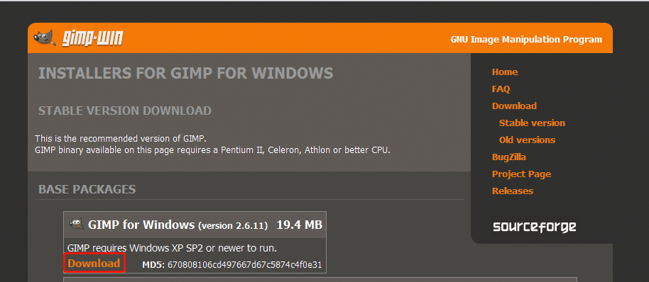 Program można pobrać ze strony http://gimp-win.sourceforge.net/stable.html. Po wejściu musisz kliknąć Download. Program instaluje się bez problemu. Trzeba po prostu potwierdzać kolejne komunikaty. Po instalacji kliknij Finish w celu uruchomienia aplikacji.