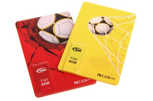 W zestawie znajdziemy nie jeden, ale dwa pendrivy, każdy o pojemności 8 GB. Kształtem przypominają one dobrze znane kibicom – żółte i czerwone kartki. Grubość modelu Team Group T141 wynosi zaledwie 1.9 mm, przez co łatwo możemy go nosić ze sobą nawet w portfelu. Całość jest wodoodporna.